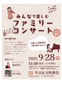 | 教会学校 | 毎週日曜日 9:00~10:00 |